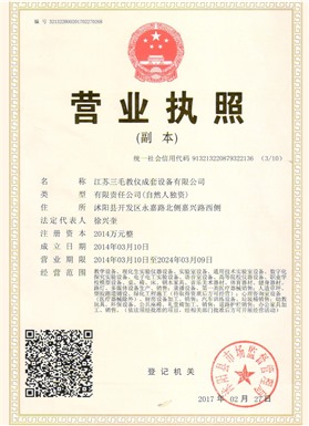江蘇三毛教儀成套設(shè)備有限公司是一家集設(shè)計、生產(chǎn)、銷售、售后為一體的大型制造企業(yè)。坐落于風(fēng)景秀麗的花木之鄉(xiāng)、全國經(jīng)濟(jì)百強(qiáng)縣、國家級經(jīng)濟(jì)開發(fā)區(qū)沭陽縣永嘉路。